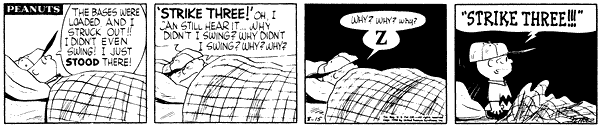 The last Peanuts daily strip was published on January 3, 2000. Charles M. Schulz died of complications from colon cancer on February 12, one day before his final Sunday strip, shown here, hit the presses. He was 78. Schulz was posthumously given the Congressional Gold Medal, the body’s highest honor given to a civilian.