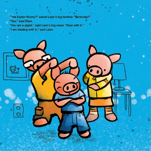 'You are a piglet,' said Liam's big sister. 'Deal with it.' 'I AM dealing with it,' said Liam."